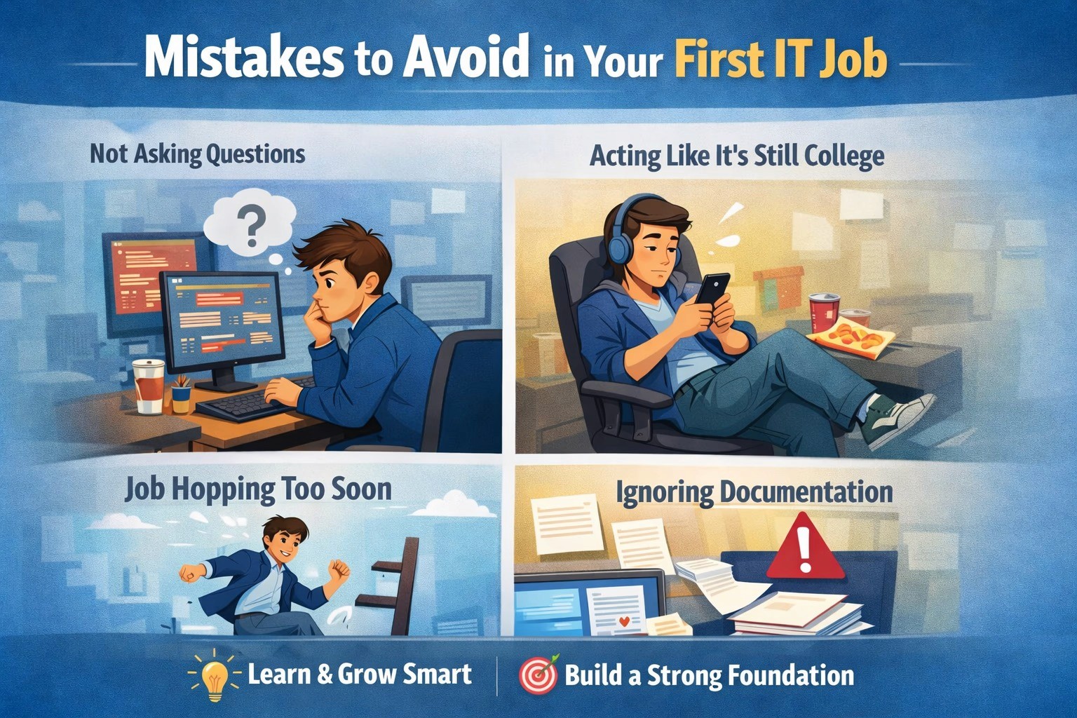 Your first IT job is a turning point. It shapes your habits, confidence, and long-term career growth. Many freshers lose valuable years not because they lack talent, but because they make avoidable early mistakes.